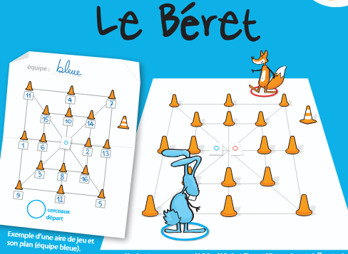 Le jeu du béret est une étape importante, car il propose une contrainte supplémentaire : la notion de temps. En effet, en situation d’opposition les élèves doivent se situer de plus en plus rapidement. Évidemment, le choix des binômes est important pour offrir à chacun la possibilité de se repérer, se situer et