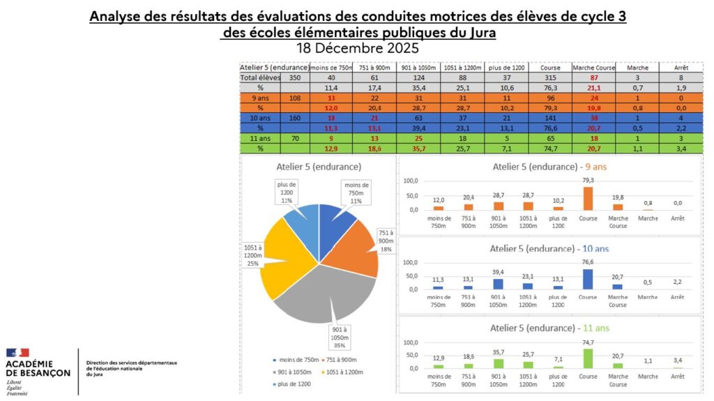 Par répercussion, le nombre d’élèves qui finissent par marcher ou même s’arrêter, bien que de faible proportion, questionne inévitablement les capacités cardio-respiratoires de ces élèves. Avec des élèves ne parvenant pas à toucher du doigt ces 10km/h, la programmation d’activités d’endurance comme le demi-fond, la natation, la course d’orientation ou le cyclisme est indispensable.